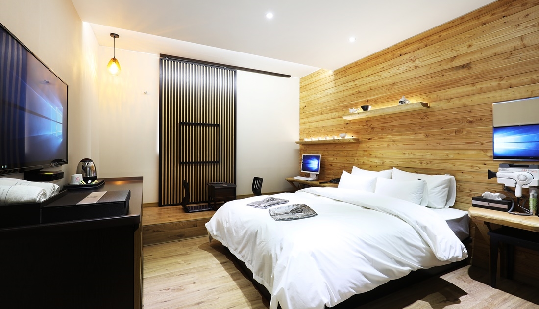 ■ 객실 내 시설안내 - LED TV + 다양한 채널의 케이블방송 - 고성능 PC +초고속인터넷(무료이용) - 전 객실 Wifi-Zone - 최신 영화감상 서비스 - 최고급 매트리스 침구류 사용 - 감각적이고 유니크한 디자인과 따듯한 조도의 조명기기 ■ 인원규정 - 모든객실은 2인 기준으로 인원추가시 인원당 1만원의 추가요금이 발생합니다.